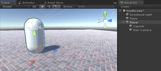 - Crie uma nova Cápsula (Objeto de Jogo -> Objeto 3D -> Cápsula) e mova-a para dentro do Objeto "Player"