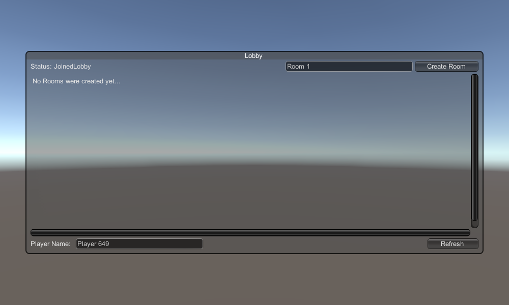 Vamos começar criando uma cena do Lobby que conterá a lógica do Lobby (Navegar pelas salas existentes, criar novas salas, etc.):