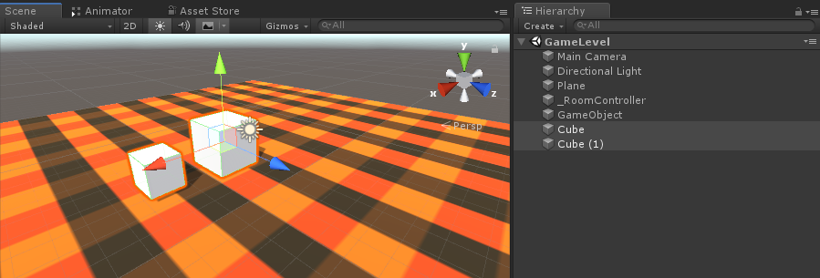 - Abra a cena "GameLevel" e crie alguns cubos (GameObject -> 3D Object -> Cube)